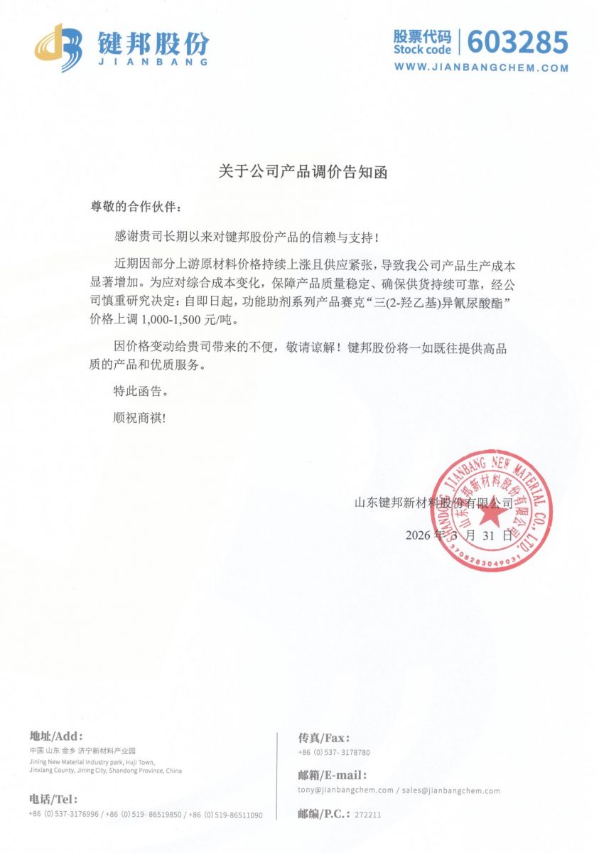 关于公司产品调价告知函